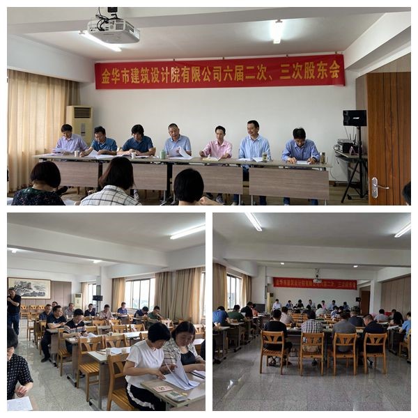 金華市建筑設(shè)計院有限公司六屆二次、三次股東會于2021年5月29日上午在公司11樓會議室召開。公司董事長吳學(xué)敏作了公司2019年度、2020年度董事會工作報告,公司監(jiān)事陳鳴作了公司2019年度、2020年度監(jiān)事工作報告,公司財務(wù)負(fù)責(zé)人姚妙云作了公司2019年度、2020年度財務(wù)報告,公司董事章子源宣讀了公司2019年度、2020年度利潤分配方案和公司第七屆董事、監(jiān)事選舉議案。會議以舉手表決的方式通過了公司2019年度、2020年度董事會、監(jiān)事、財務(wù)等報告及利潤分配方案、公司第七屆董事、監(jiān)事選舉議案。會議以無記名投票的方式選舉公司第七屆董事、監(jiān)事,陳將生、杜禮琪、吳學(xué)敏、章子源、傅志寶、樓希龍(按姓氏筆劃排名)當(dāng)選公司第七屆董事,陳鳴當(dāng)選公司第七屆監(jiān)事。